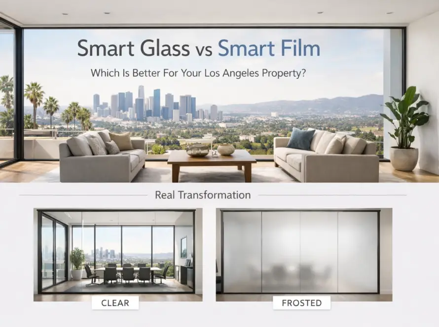 This depends on whether you are retrofitting an existing space or building from the ground up. Smart glass (where the PDLC is laminated between two panes) is ideal for new construction as it offers the cleanest look and maximum durability. Smart film is the perfect retrofit solution for existing glass partitions, providing the same functionality without the need to remove the current glass. You can learn more about these differences in our previous blog post on commercial office trends.