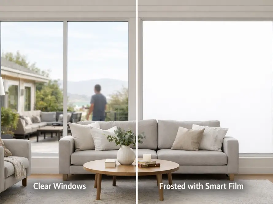 Installation of PDLC technology can happen in two ways: factory-laminated smart glass or retrofit smart film. Laminated glass is ideal for new construction where the film is permanently sealed between two panes of tempered glass. Retrofit film is a self-adhesive layer applied to existing windows, making it a favorite for modernizing existing offices or homes in Southern California.