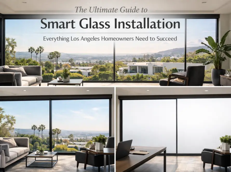smart glass installation uses insulated glass units with PDLC technology built into the panel structure. We custom fabricate each unit in our Los Angeles facility. You receive glass that switches from transparent to opaque instantly.