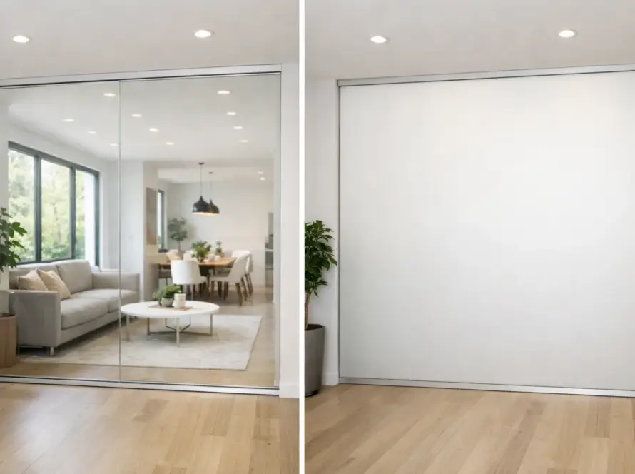 In many modern luxury homes, the boundary between the master bedroom and the en-suite bathroom is becoming more fluid. Open-concept master suites create a sense of scale and grandeur, but they often lack the necessary privacy for daily routines. A floor-to-ceiling smart glass partition allows you to enjoy the full architectural volume of the suite during the day while providing total visual separation at the touch of a button when the bathroom is in use. This application typically involves custom residential smart glass installation to ensure the panels are perfectly aligned with the surrounding floor and ceiling finishes.