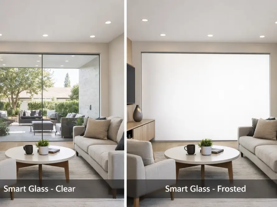 Retrofit smart film onto your existing glass and you can instantly switch from clear → frosted for: